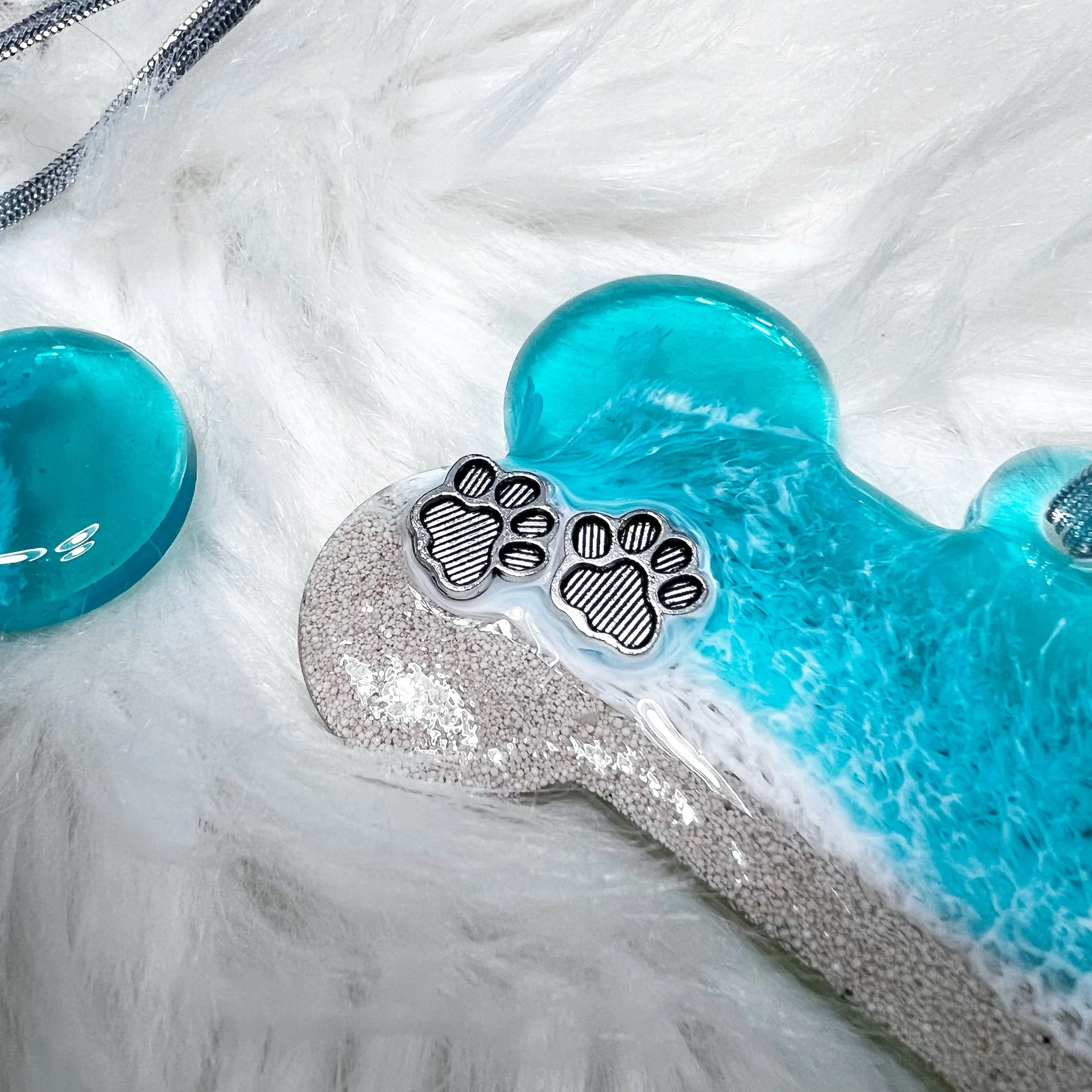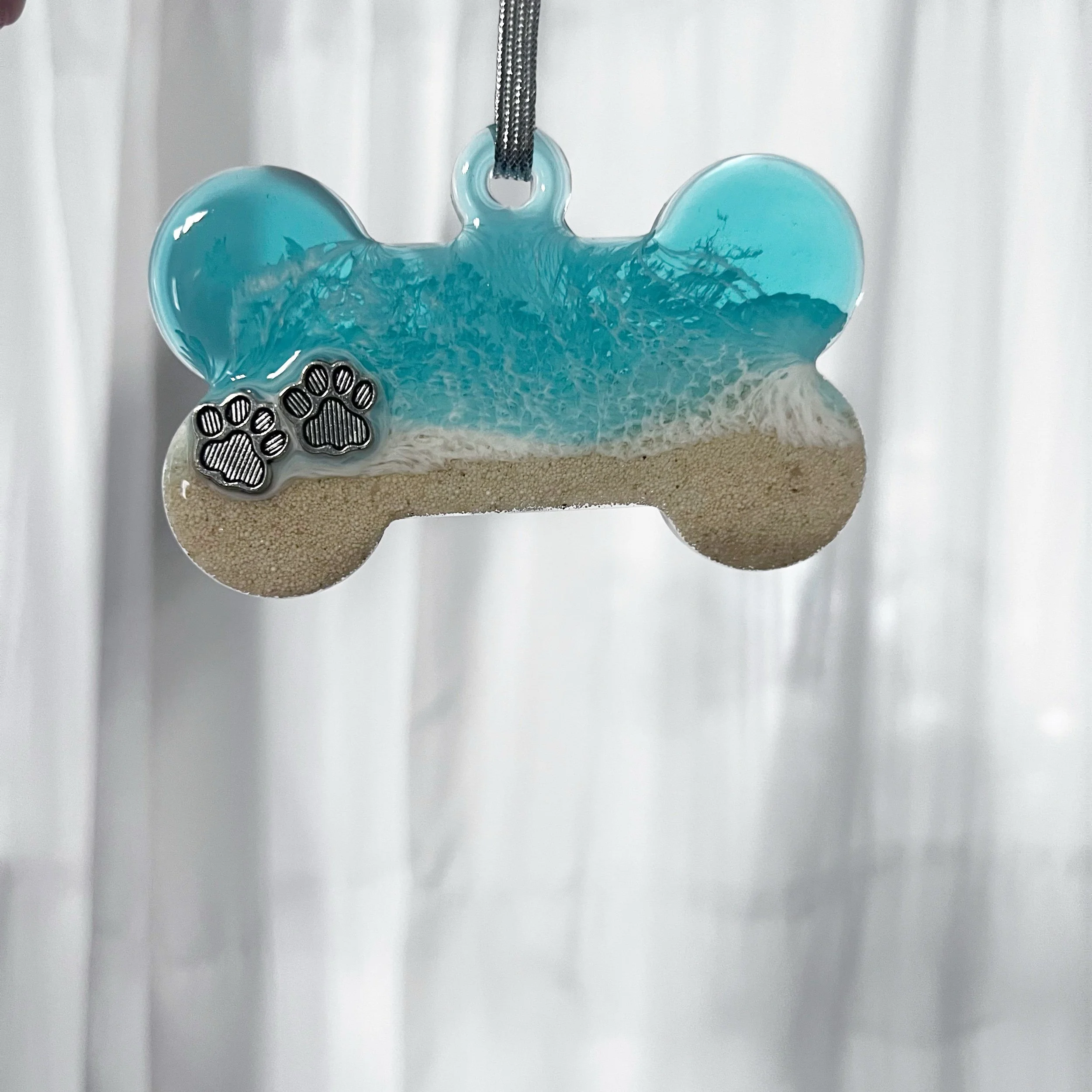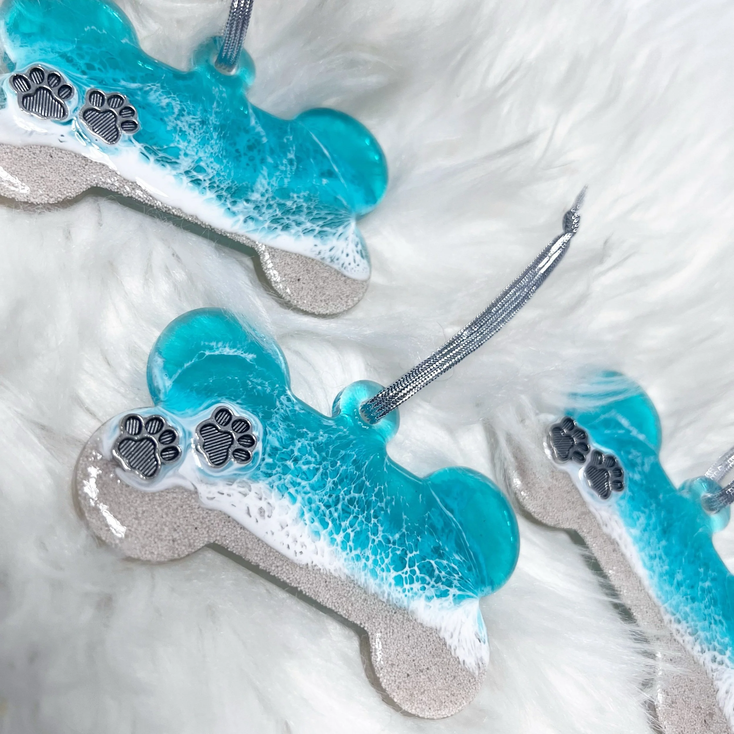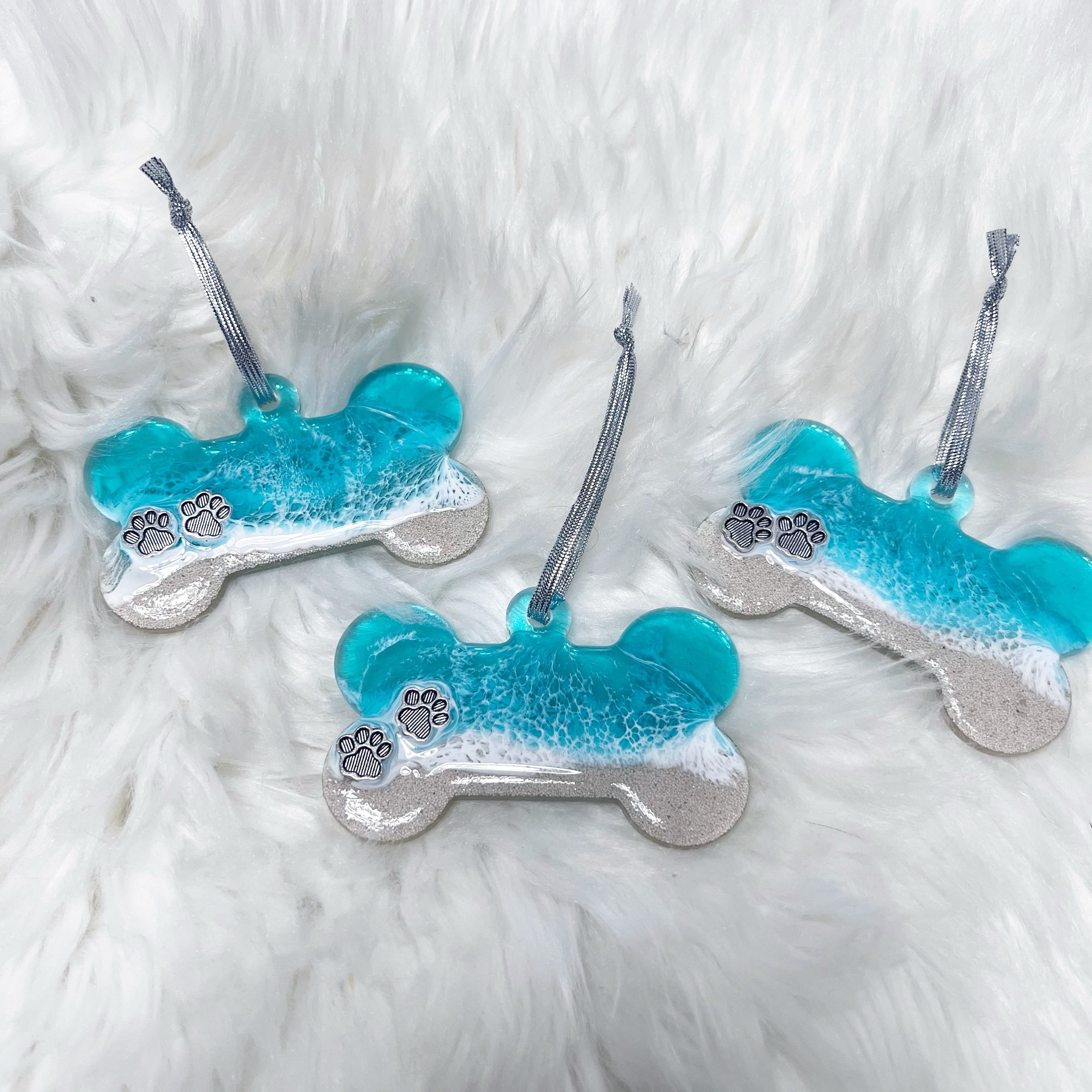 Bring home a little piece of the ocean today with one of these adorable dog bone ornaments. Each ornament comes with two layers of resin ocean waves washing ashore a beach comprised of sand from the Bahamas with two adorable paw prints. Ornaments are 3.5” x 2.8”. Perfect for the beach-going pet lover in your life!
